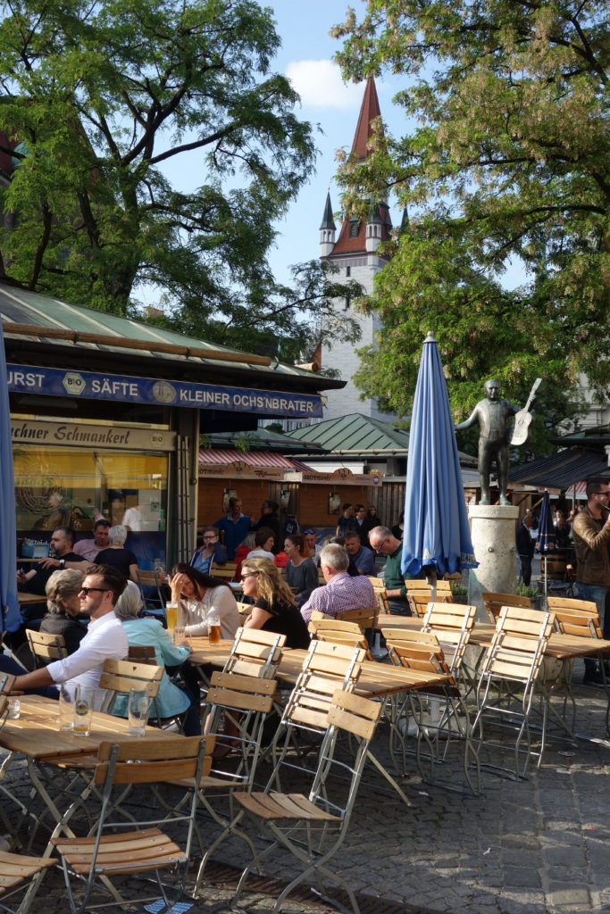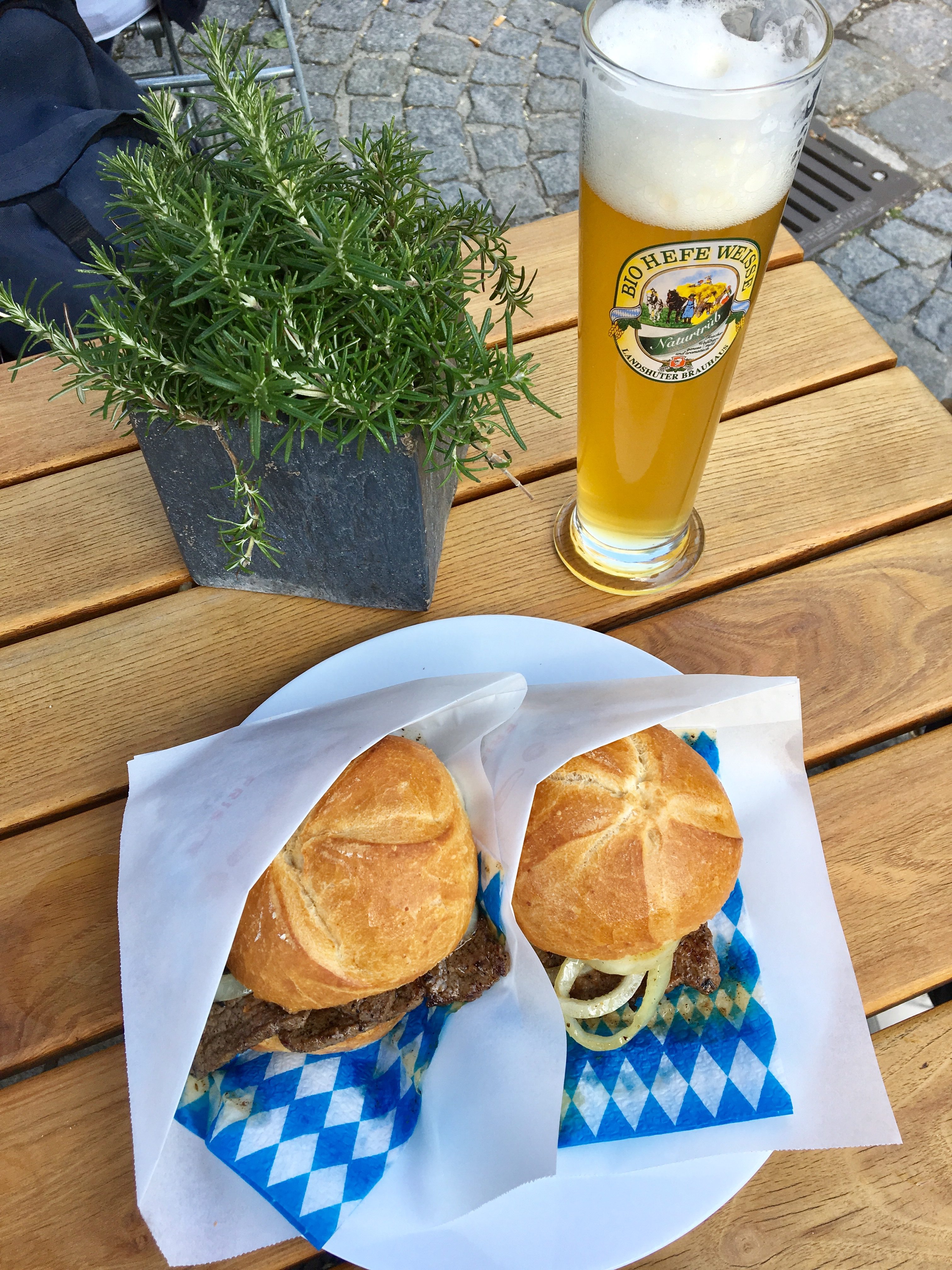 München ist für mich ein einziger Biergarten – oder ein Bräuhaus. Je nach Wetter eben! Meist führt mich mein erster Weg auf den Viktualienmarkt im Herzen der Residenzstadt. Kann mich dann meist kaum zwischen Leberkäs, Weißwürscht, Obazda (eine Art Liptauer mit Camembert oder Brie, hauptsache ein Schuss Weissbier is drin) mit Brezerl oder Ochsensemmerl entscheiden. Wurscht, in der kleinen Ochsenbraterei (die kenn ich auch vom Münchner Oktoberfest) bekommt man ohnehin alles, was die Waage verboten hat.