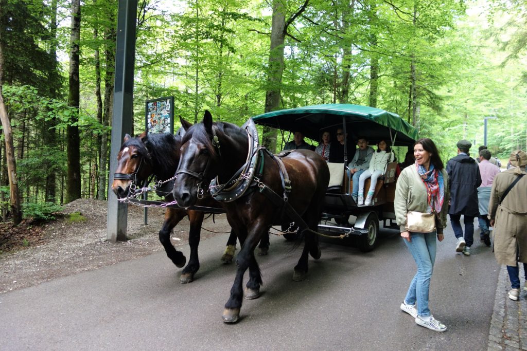 Und weil wir schon so im königlichen Wahnsinn drin waren, beschlossen wir noch einen Ausflug nach Neuschwanschein, wo der irre König Ludwig (auch nicht wirklich) gwohnt hat. Zu Fuß ging es auf den Berg. Zu Spät entdeckt, dass es da auch Pferdekutschen gegeben hätte.